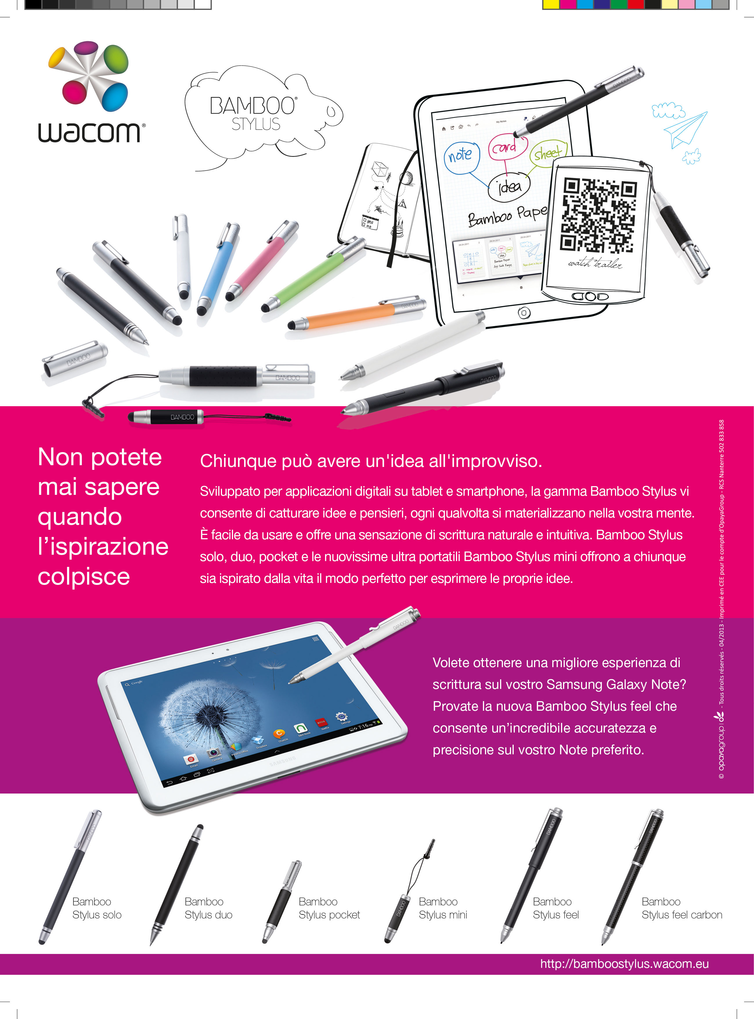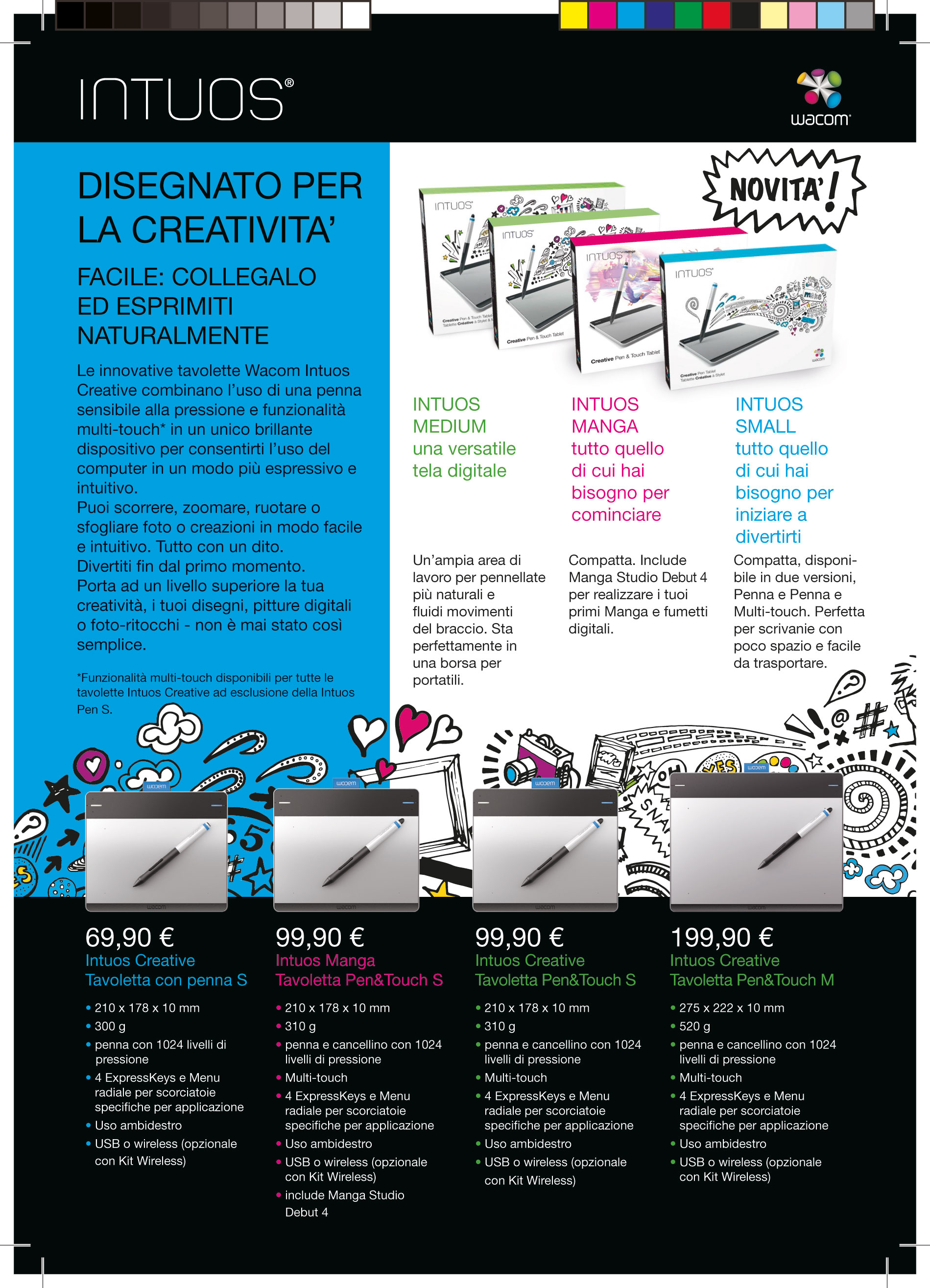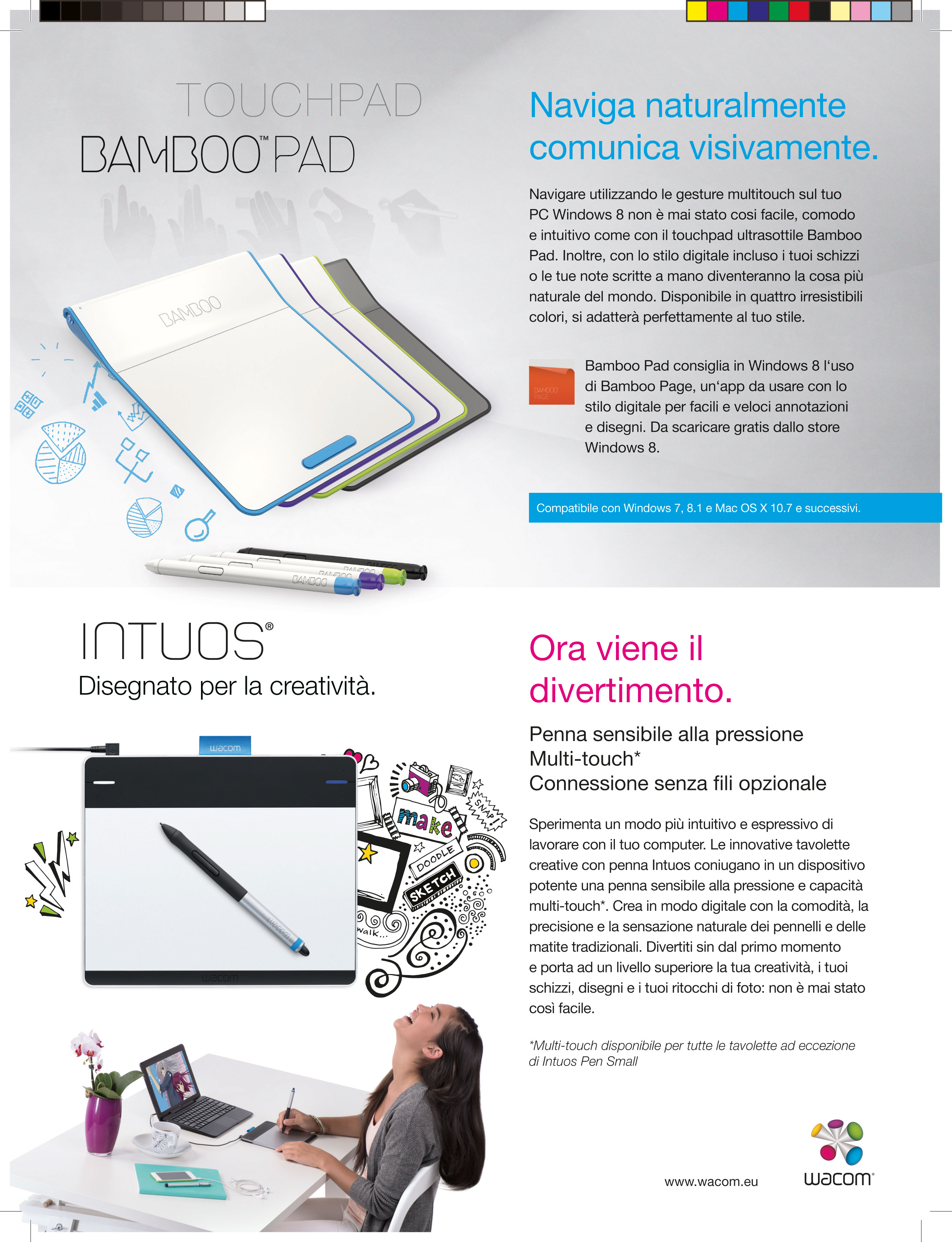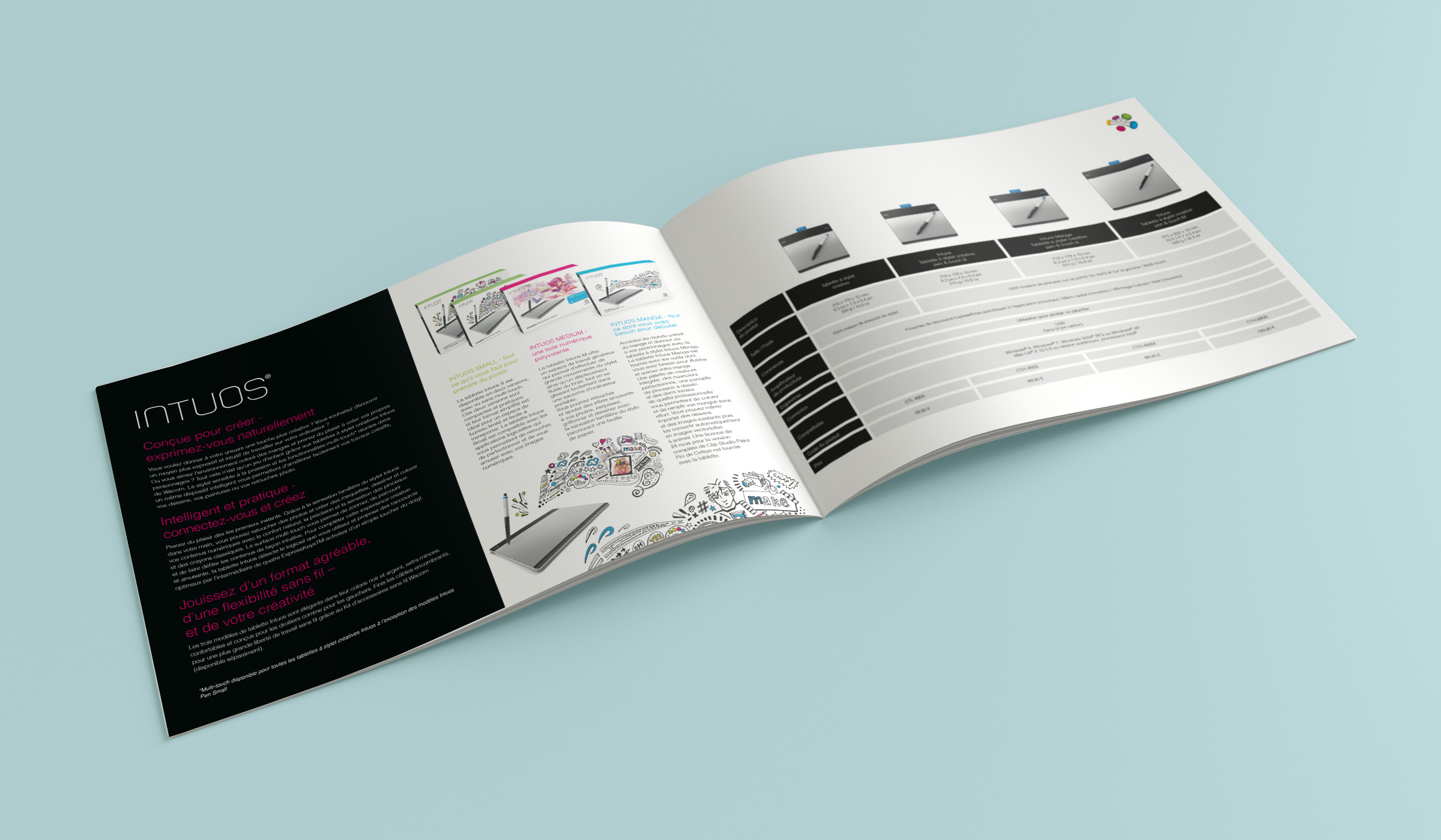 Wacom For a creative world Mise en page du catalogue (création, cromalin, envoie en impression, BAT) et création d’encarts de pub Wacom. Client: Wacom Website: wacom.com Services: Print